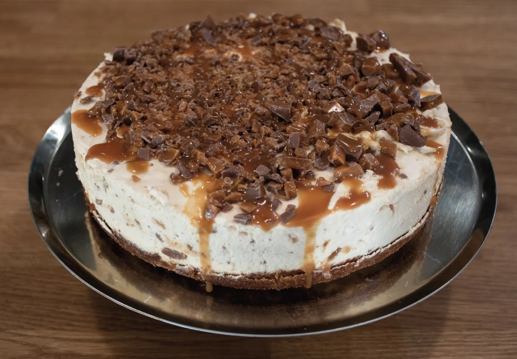 Asiakkaidemme suuri suosikki, kermaisa juustokakku, jossa on rapea mantelipohja, laktoositon täyte ja päällä klassisen Daim-suklaan paloja sekä oma kinuskikastikkeemme. Huomioithan, että Daim suklaa sisältää laktoosia, mutta kaikki muut ainesosat ovat laktoosittomia.